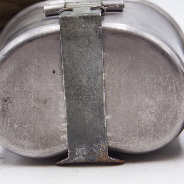 A 1943 dated canteen, with a 1953 dated cup, and a 50s cover.