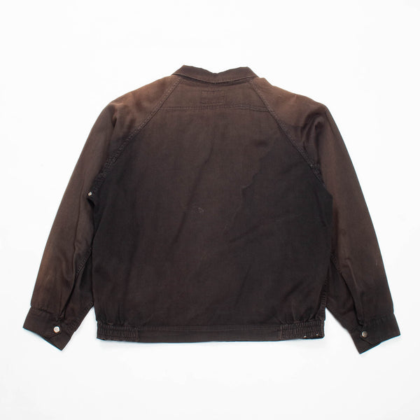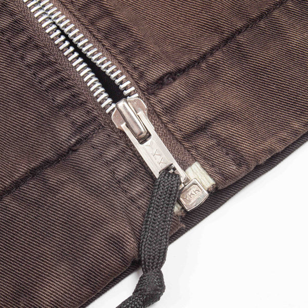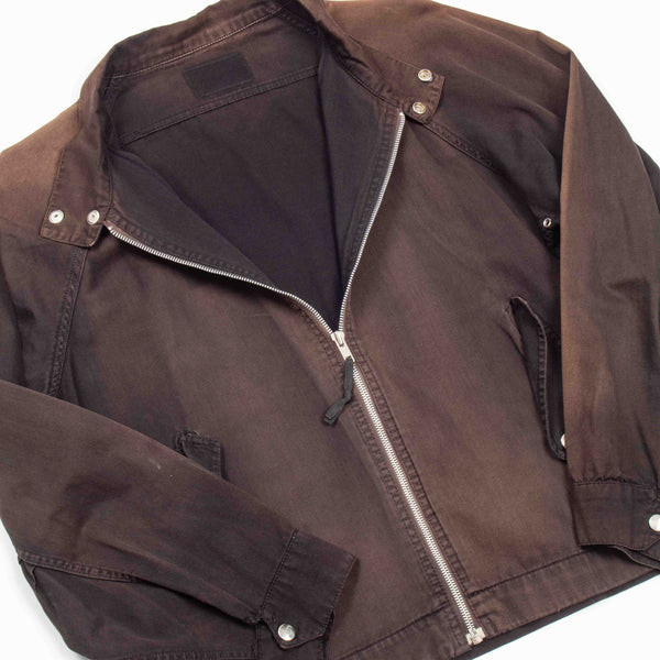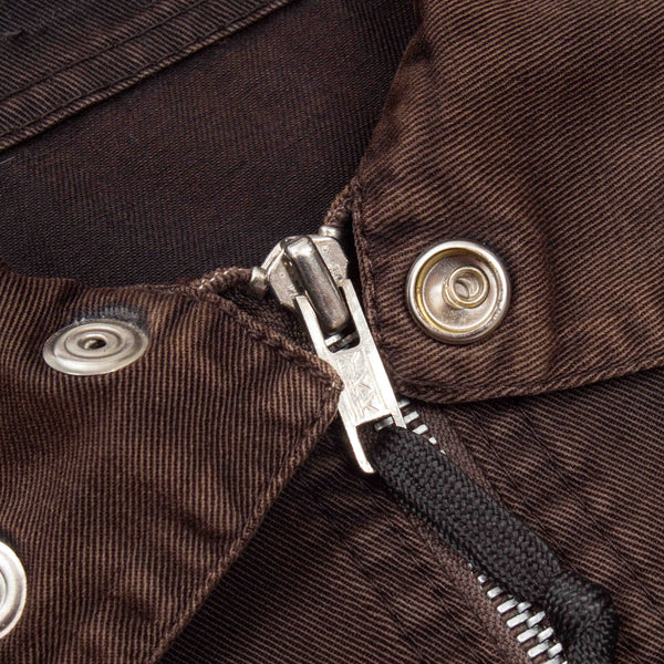 A very beautiful Japanese-made Harrington / Bomber jacket, made with a soft, lightweight 100% cotton twill fabric. It has a full-length YKK front zip, snap adjustments around the collar and cuffs, and two waist-level snap-secured pockets.