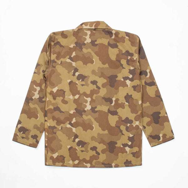 Made under Military contract in Japan, this shirt displays a small, white silk size label under the collar. Worn by the Republic of Vietnam National Police Field Force (Cảnh Sát Dã Chiến - CSDC), the camo pattern is based on the brown side of the US Mitchell pattern.