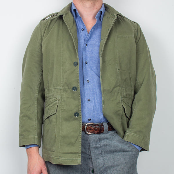 A simple, versatile chore jacket made with a mid-weight 100% cotton drill fabric. Featuring two lower pockets, an internal pocket on the left breast and a protected button-up main front closure. An ideal layering piece for chillier months or a light work jacket for summer.