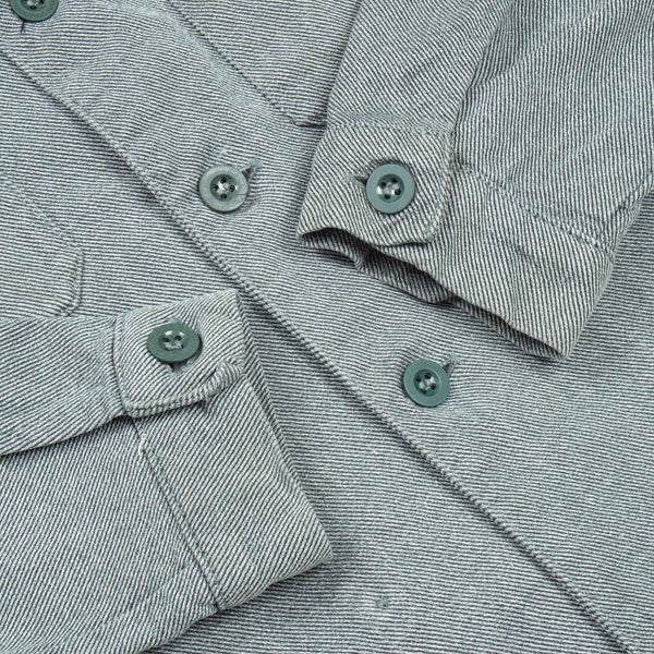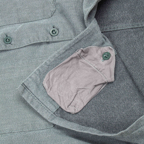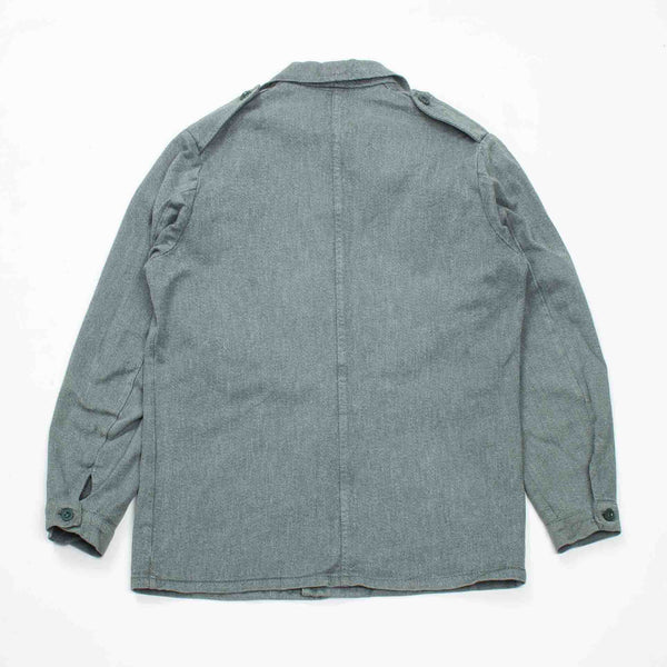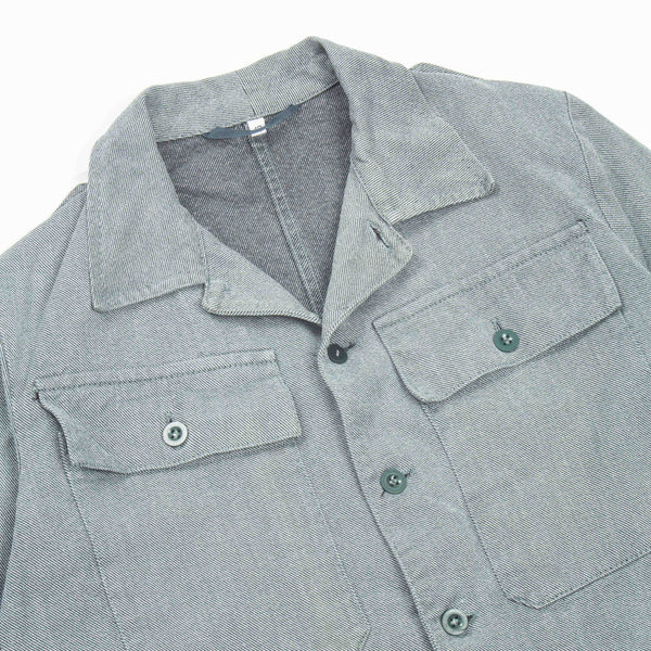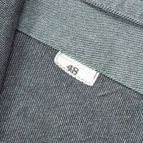 A superb chore jacket, made with a thick, hard-wearing 100% cotton denim fabric, displaying a "Salt & Pepper" twill weave pattern. These jackets were truly made to last a lifetime and feature a simple, rugged design with two chest pockets, full button front closure, adjustable cuffs, and a small dressing pocket concealed under the lower front - an ideal pouch for a phone, cigarettes, small wallet, or other personal effects.