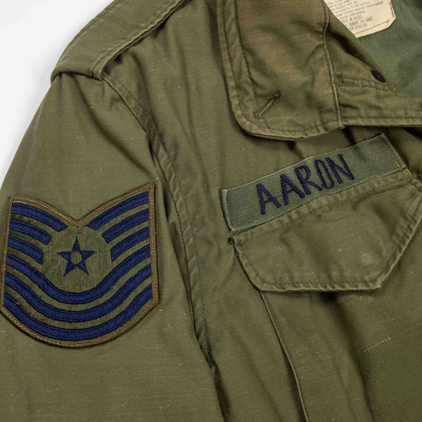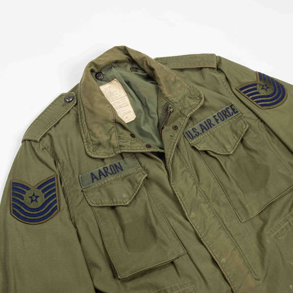 A third pattern M65 jacket with straight cuffs, brass zip, and epaulettes.