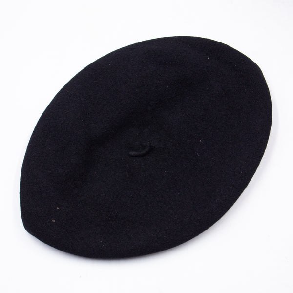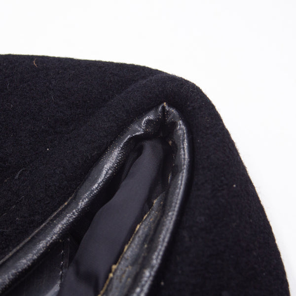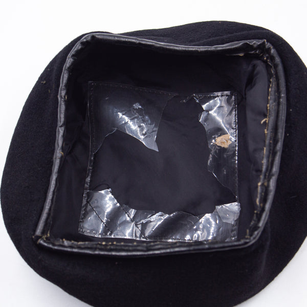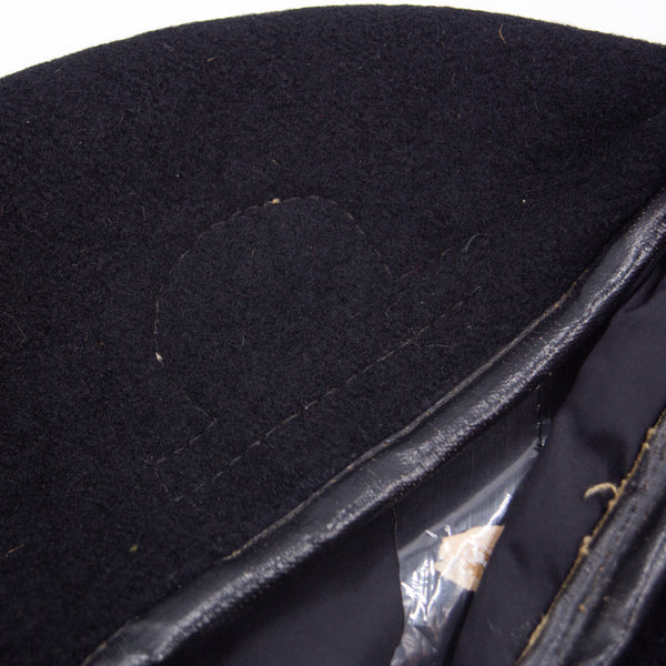 A genuine late-war Vietnamese tailor-made wool beret with a typical construction. It has a thick wool shell, a black nylon lining, and a vinyl sweatband. There was a sheet plastic plastic-covered tailor shop label on the lining, but it has deteriorated with time.