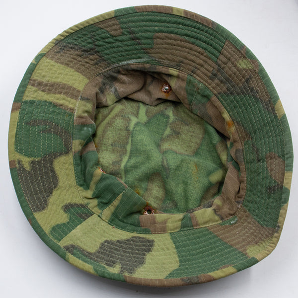 A typical late-war Vietnamese tailor-made boonie hat, made with USGI ripstop M-1948 (green-dominant) ERDL fabric. Approx circa 1969-1972.